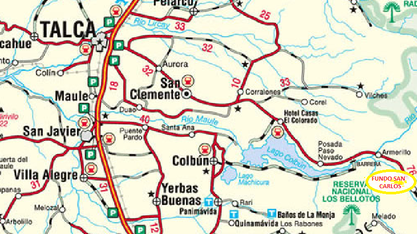 DESDE TALCA , SE TOMA LA RUTA INTERNACIONAL PASO PEHUENCHE, A 70 KM SE ENCUENTRA UBICADO LA ENTRADA LA FUNDO SAN CARLOS,A 1 KM DEL PARADERO SE ENCUENTRA LA CABAÑA.